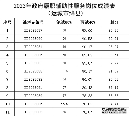一、運城市迅達人力資源服務(wù)有限公司2023年政府履職管理服務(wù)輔助性崗位考試已如期進行,現(xiàn)成績公示如下: